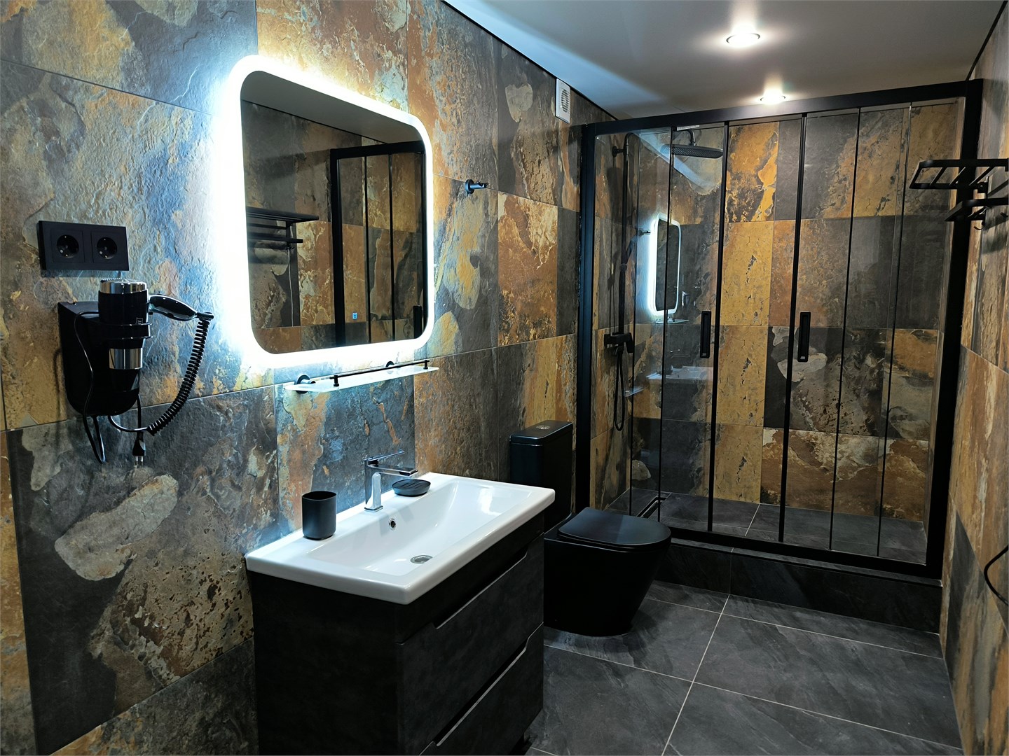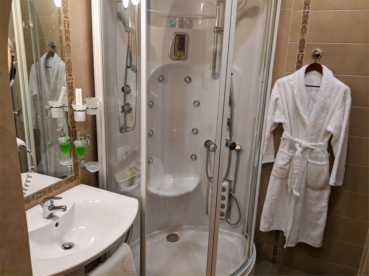 - Санузел: с душем, тапочки, туалетные принадлежности, фен, халат