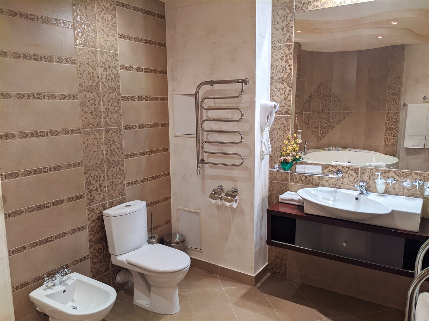 - Санузел: 2 санузла, биде, с джакузи, тапочки, туалетные принадлежности, фен, халат